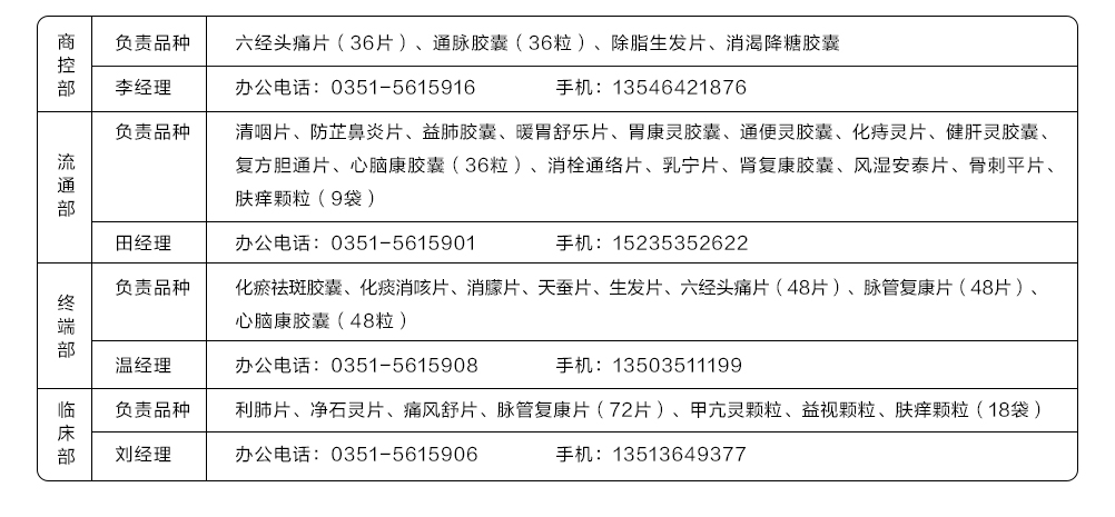 山西仁源堂藥業(yè)有限公司銷售各區(qū)域聯(lián)系人及電話
