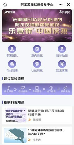 隨著侖卡奈單抗中國(guó)獲批,早期延緩AD疾病進(jìn)展成為可能,當(dāng)務(wù)之急是幫助潛在患者盡早發(fā)現(xiàn)病情,做好自己的健康守門(mén)人。據(jù)了解,公眾可以登錄"銀發(fā)通"微信小程序,找到阿爾茨海默病專(zhuān)區(qū),足不出戶便可以獲得從自篩、初診、用藥到生活護(hù)理的一站式信息指導(dǎo),如通過(guò)查詢"記憶地圖",找到距離最近設(shè)有神經(jīng)內(nèi)科或記憶門(mén)診的醫(yī)院,前往診斷治療。