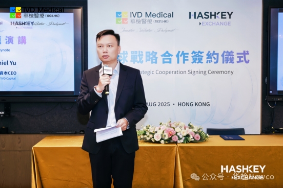 華檢資本CEO Daniel Yu博士在簽約儀式上發(fā)表主題演講,強(qiáng)調(diào)華檢醫(yī)療致力于提升醫(yī)療創(chuàng)新藥的研發(fā)效率和資本配置效率。為實(shí)現(xiàn)這一戰(zhàn)略目標(biāo),華檢醫(yī)療將與HashKey集團(tuán)深化合作,探索更多現(xiàn)實(shí)世界資產(chǎn)(RWA)產(chǎn)品形態(tài),升級以太坊(ETH)儲備管理模式,助力醫(yī)療創(chuàng)新藥企鏈上融資,并共同參與國際合規(guī)框架建設(shè)。