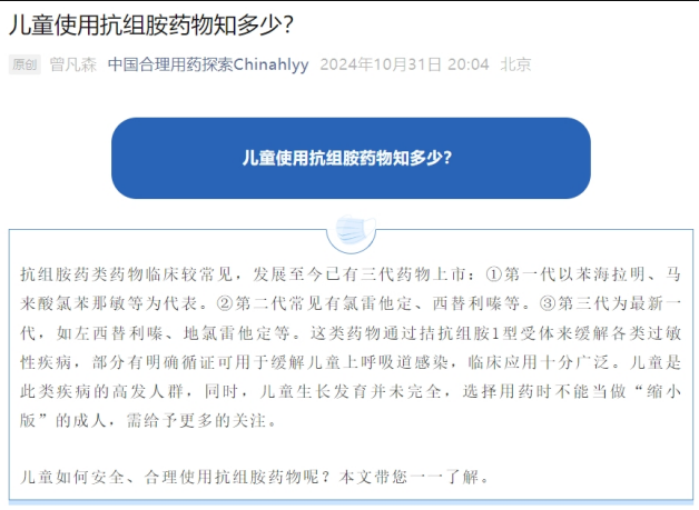 針對兒童如何安全、合理使用抗組胺藥物,國家藥品監(jiān)督管理局主管的核心期刊《中國合理用藥探索》官方微信公眾號曾發(fā)布《兒童使用抗組胺藥物知多少?》一文給予了指導建議。其中第三代抗組胺藥物代表藥物——鹽酸左西替利嗪顆粒憑借安全性、有效性、劑型適宜、臨床使用經(jīng)驗豐富等優(yōu)勢,被推薦為緩解兒童各類過敏性疾病和上呼吸道感染卡他癥狀的建議優(yōu)選藥物。