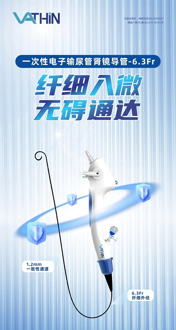 從產(chǎn)品優(yōu)勢角度出發(fā),以“一次性電子輸尿管腎鏡導(dǎo)管-6.3Fr”為例,基于約2.1mm的超細鏡體,能夠輕松通過狹窄輸尿管,進而顯著降低輸尿管黏膜損傷風險。此外,通過搭配9fr的導(dǎo)引鞘,以降低鏡體擺動導(dǎo)致的鞘管移位風險,穩(wěn)定灌注流量(≥40ml/min),維持清晰術(shù)野。