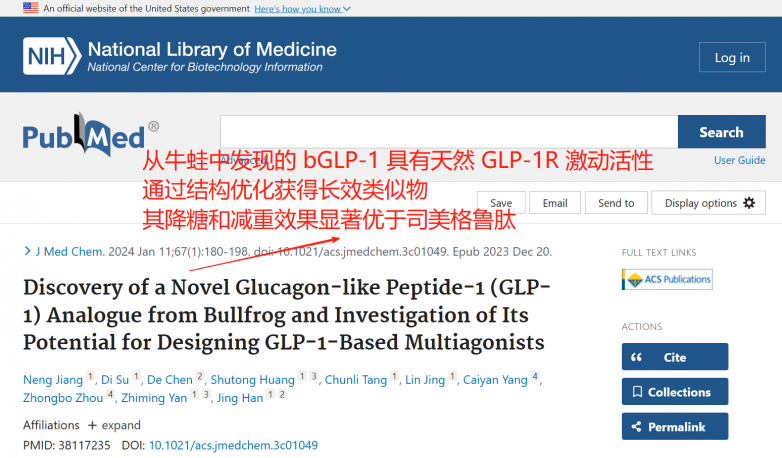 2025年1月,由美國(guó)國(guó)家圖書(shū)館所屬的世界知名權(quán)威醫(yī)學(xué)數(shù)據(jù)庫(kù)PubMed上,一篇名為《類(lèi)bGLP降糖減重效果顯著優(yōu)于司美格魯肽》像一顆重磅炸彈,再一次將類(lèi)牛蛙抑脂肽推上熱搜,引發(fā)廣泛關(guān)注與討論!