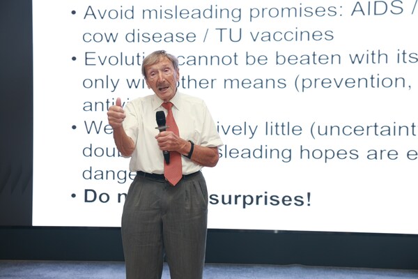 2025年10月20日,上海細胞治療集團再度迎來世界級科學(xué)巨匠——1996年諾貝爾生理學(xué)或醫(yī)學(xué)獎獲得者羅夫?辛克納吉(Rolf M. Zinkernagel)教授到訪交流,并在上海細胞治療集團做學(xué)術(shù)報告:Immune responses against viruses and tumors。上海細胞治療集團董事長兼CEO錢其軍、上海細胞治療集團COO兼新藥BG董事長孫艷參加了交流及討論活動。