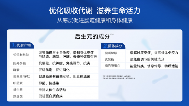 如何更好的維護腸道菌群平衡?在微生態(tài)領(lǐng)域,后生元是當(dāng)下的科研熱點。后生元是有益菌滅活后的菌體成分及其代謝產(chǎn)物統(tǒng)稱,包含短鏈脂肪酸、維生素、氨基酸等。