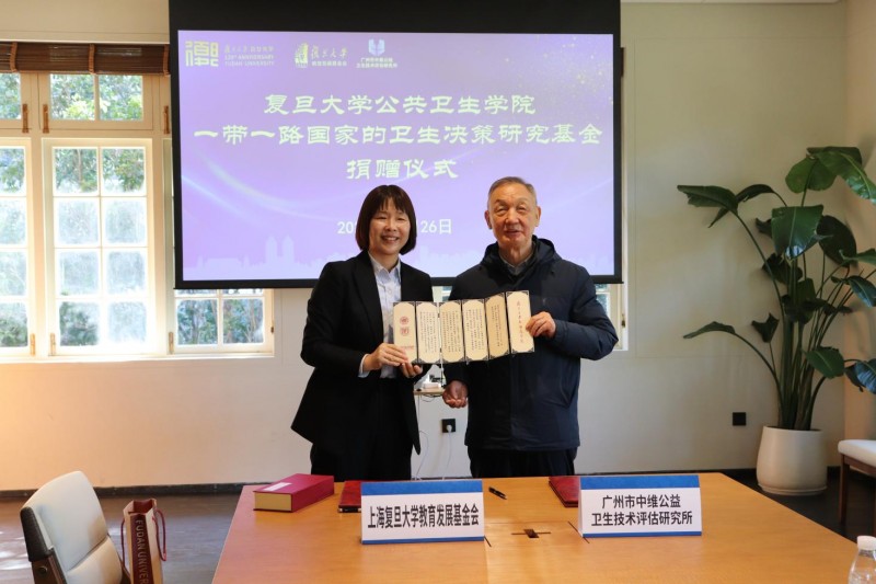 2025年11月26日上午在復(fù)旦大學(xué)邯鄲校區(qū)校友館篤志廳隆重舉行“一帶一路國(guó)家的衛(wèi)生決策研究基金”捐贈(zèng)簽約儀式,復(fù)旦大學(xué)對(duì)外聯(lián)絡(luò)與發(fā)展處處長(zhǎng)、上海復(fù)旦大學(xué)教育發(fā)展基金會(huì)秘書長(zhǎng)劉莉與中維公益理事長(zhǎng)鞠新霞代表雙方簽署了捐贈(zèng)協(xié)議。