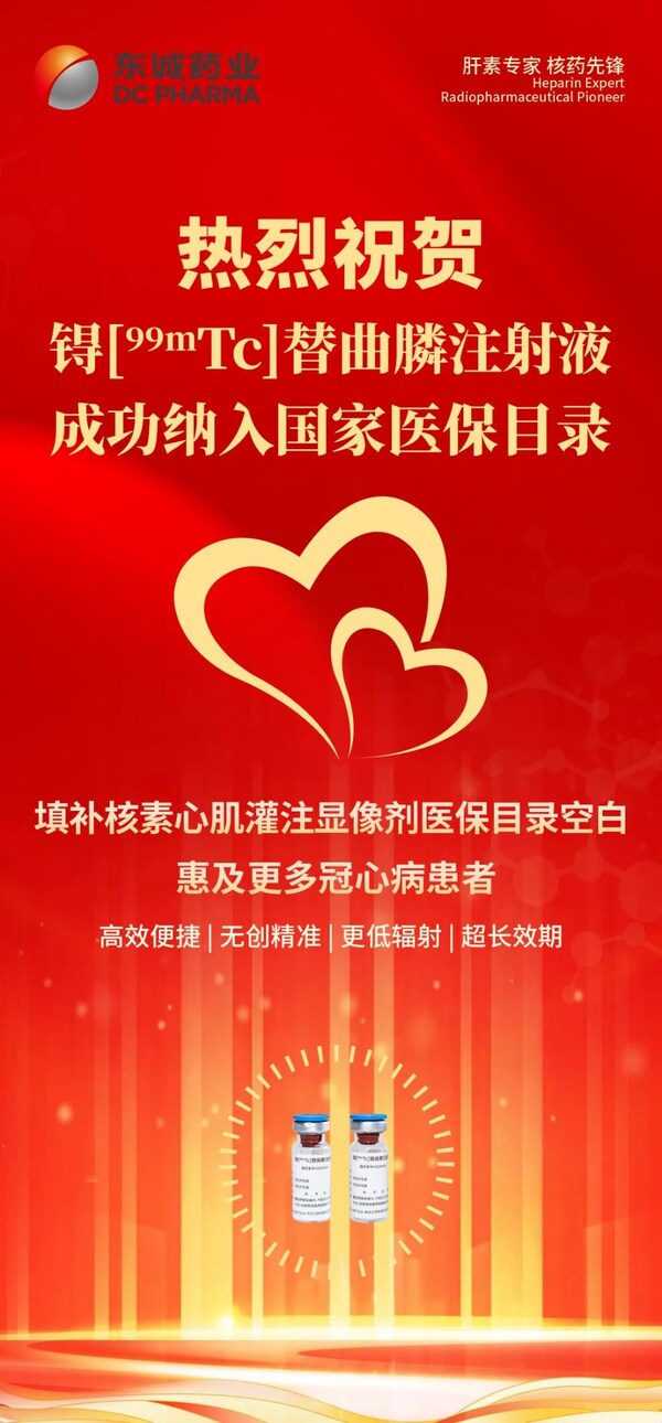 南京江原安迪科(東誠藥業(yè)全資子公司)生產(chǎn)的锝[99mTc]替曲膦注射液先后經(jīng)過資料申報(bào)、形式審查、專家評(píng)審、現(xiàn)場(chǎng)談判等環(huán)節(jié),成功納入國(guó)家醫(yī)保目錄,未來將極大程度減輕患者經(jīng)濟(jì)負(fù)擔(dān),提高患者對(duì)SPECT-MPI檢查的可及性,促進(jìn)冠狀動(dòng)脈疾病診療精準(zhǔn)化。