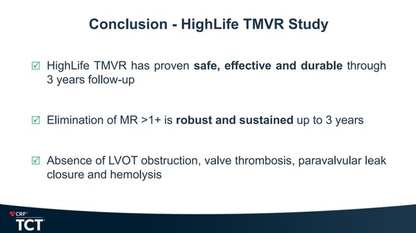 已公布的臨床數(shù)據(jù)持續(xù)釋放積極信號(hào),充分印證了HighLife TSMVR 的優(yōu)異性能。2023 年 Wolfgang Rottbauer 教授發(fā)表了前30例1年臨床結(jié)果,2025年TCT 大會(huì)公布了前 35 例患者3年的臨床結(jié)果。技術(shù)成功率及臨床效果表現(xiàn)優(yōu)異,包括持續(xù)降低MR≤1+,Valve-in-Ring錨定設(shè)計(jì)帶來(lái)有效的密封效果,無(wú)需封堵的瓣周漏,無(wú)血液或瓣膜相關(guān)血栓發(fā)生,無(wú)左室流出道梗阻發(fā)生,且具有良好的左室逆重構(gòu)效應(yīng)。顯著改善紐約心功能分級(jí),提升生活質(zhì)量,包括生活質(zhì)量評(píng)分KCCQ改善及6分鐘步行試驗(yàn)改善。
