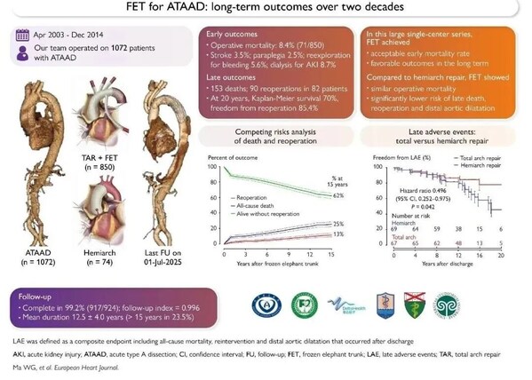 來源:Wei-Guo Ma, Yu Chen, Su-Wei Chen, Wei Zhang, Jun Zheng, Qing-Guo Li, Lingeng Lu, Jun-Ming Zhu, Gabriele Piffaretti, John A Elefteriades, Li-Zhong Sun. Frozen elephant trunk for acute type A aortic dissection: long-term outcomes over two decades. European Heart Journal, 30 January 2026