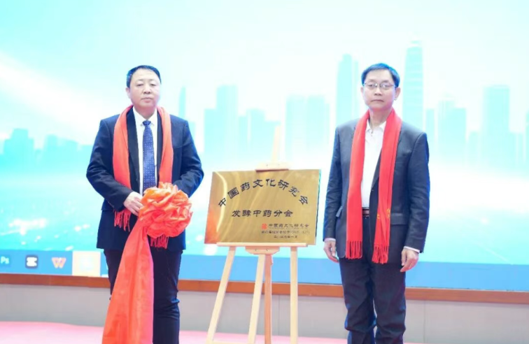 中國(guó)藥文化研究會(huì)禹同生會(huì)長(zhǎng),發(fā)酵中藥分會(huì)王如昌會(huì)長(zhǎng),共同為發(fā)酵中藥分會(huì)揭牌