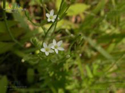 一年生草本,高20-40cm。全株光滑無(wú)毛。莖直立,近四棱形,多分枝。葉對(duì)生;無(wú)柄;基部葉片橢圓形或卵狀橢圓形,長(zhǎng)6-16mm,寬3-6mm,先端鈍尖,上部葉橢圓狀披針形,先端尖,似苞葉狀,長(zhǎng)6-13mm,寬2-4mm;具3出脈。花多數(shù),排列成疏散的二歧式聚傘花序,具細(xì)長(zhǎng)梗;花萼5深裂,裂片鉆形,中脈在背面高高突起呈脊?fàn)睿换ü诼┒沸?,白色或粉紅色,長(zhǎng)1.5cm,花冠筒部狹長(zhǎng),先端5裂,裂片短,長(zhǎng)橢圓形,長(zhǎng)2.7-3.2mm;雄蕊5,稍外露,著生于花冠喉部,花絲短,線形,長(zhǎng)約2mm,花藥長(zhǎng)圓形,卷作螺旋形;子房上位,2室,橢圓形,長(zhǎng)7-長(zhǎng)7.5-9mm,花柱宿存。種子球形,黑褐色,表面有淺蜂窩狀網(wǎng)隙。花、果期7-9月。