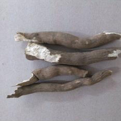 性狀鑒別:塊根紡錘形,長6-12cm,直徑0.6-2cm,多彎曲不直。表面黃褐色,有縱皺紋。質硬,不易折斷,斷面白色,粉性,具稀疏的放射狀紋理。氣微,味微甘。
