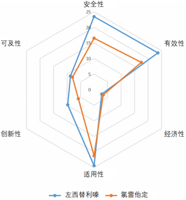 該項研究結(jié)果顯示,左西替利嗪的整體評分顯著高于氯雷他定(92.83分 vs. 72.49分),表明其整體臨床價值顯著優(yōu)于氯雷他定。