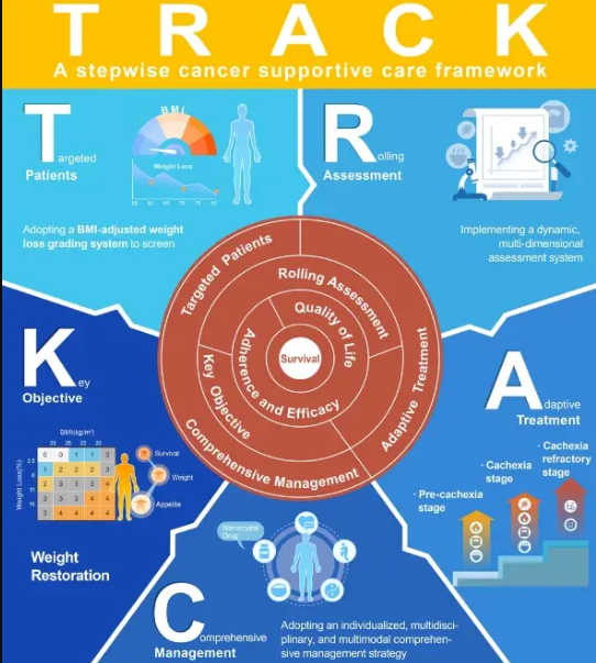 夏青教授表示,既往臨床中通常只關注患者的抗腫瘤治療,而忽視了對其進行營養(yǎng)管理、疼痛管理和心理支持等。為此,她強調(diào)「臨床應加強對厭食、惡病質(zhì)和肌少癥的篩查和關注」,并希望未來能將 TRACK 理念深入落地臨床實踐,以更好地造福腫瘤患者。